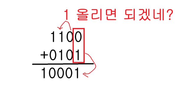 그냥 이런식으로 대충 올림수가 있으니까 올리고, 내릴건 내리고, 머릿속으로 계산을 하거나, 10진법으로 변환해서 계산을 하고 다시 2진법으로 변환하는 방법도 있습니다.